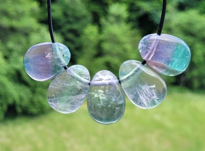 Hanger Fluoriet groen/ paars doorboord 3 cm Fluorite