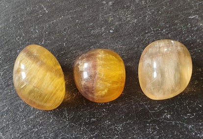 Mooie gestreepte heldere Trommelsteen gele Fluoriet .