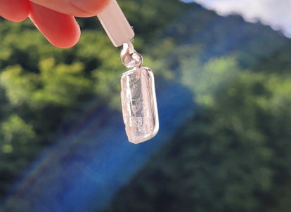 Ruwe heldere Kunziet in zilver hanger 2,5 cm Rohe klare Kunzit in Silber Anhänger, Rough clear Kunzite in Silver pendant