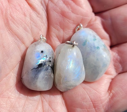 Mooie hanger Regenboog Maansteen met mooie blauwe flash.