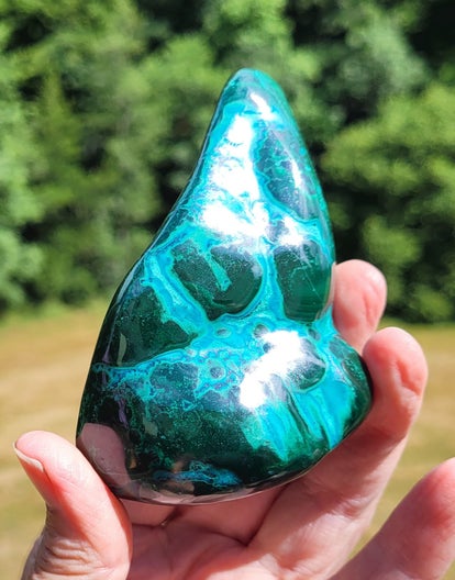 Polished piece of Malachite and Chryssocolla. Also called Malacholla.