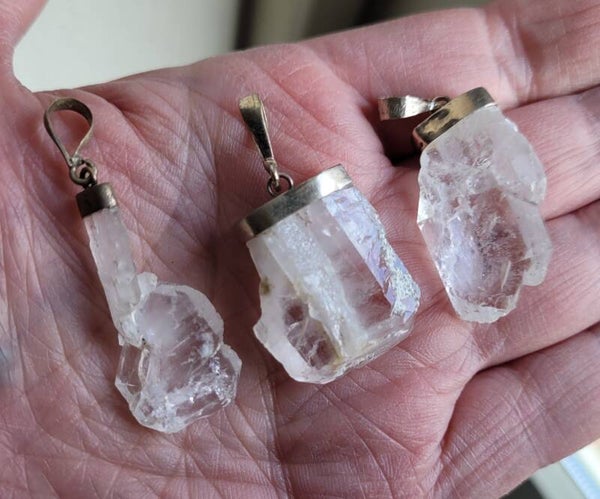 Mooie hanger ruwe Fadenkwarts in zilver cap.