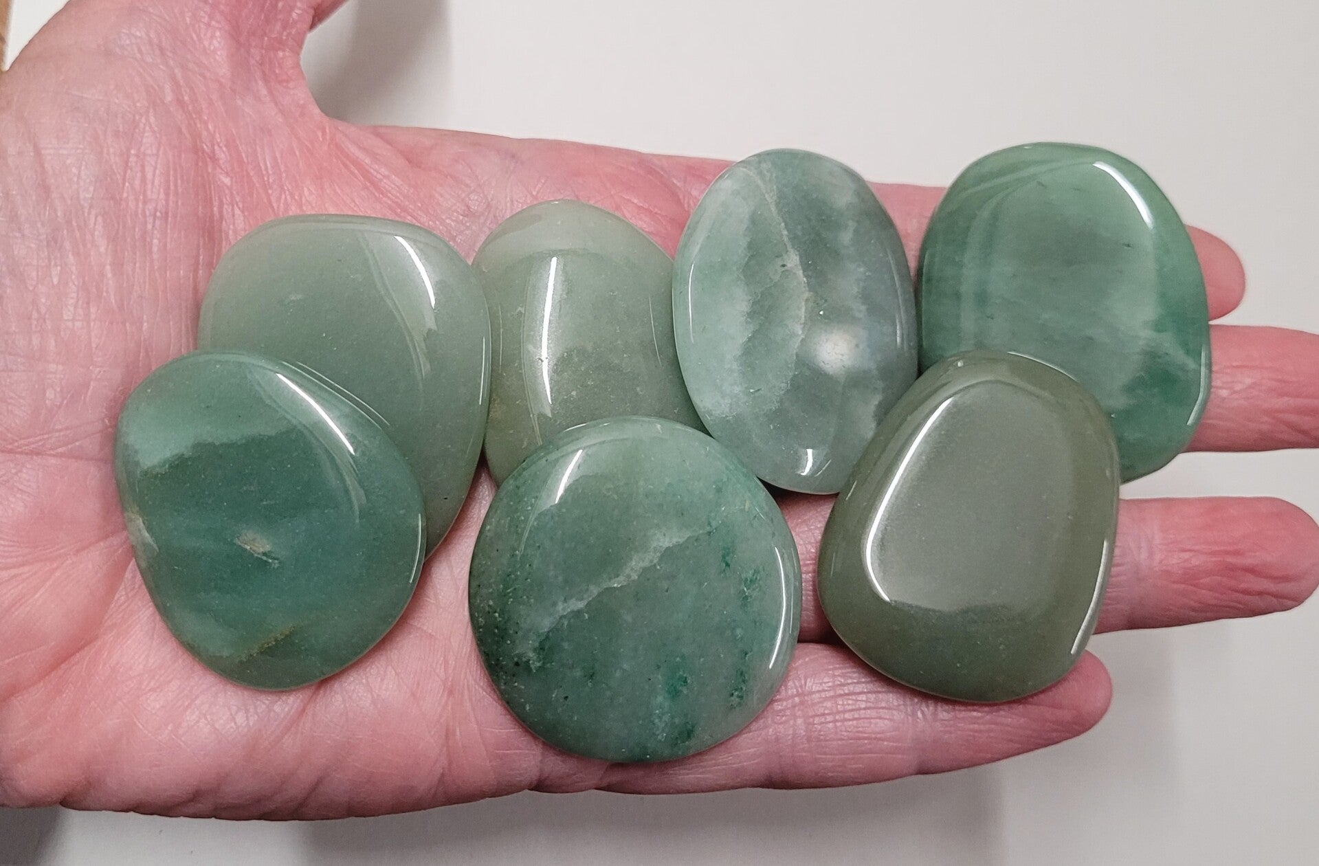 Mooie schijf Aventurijn. Bijna allemaal ovaal.