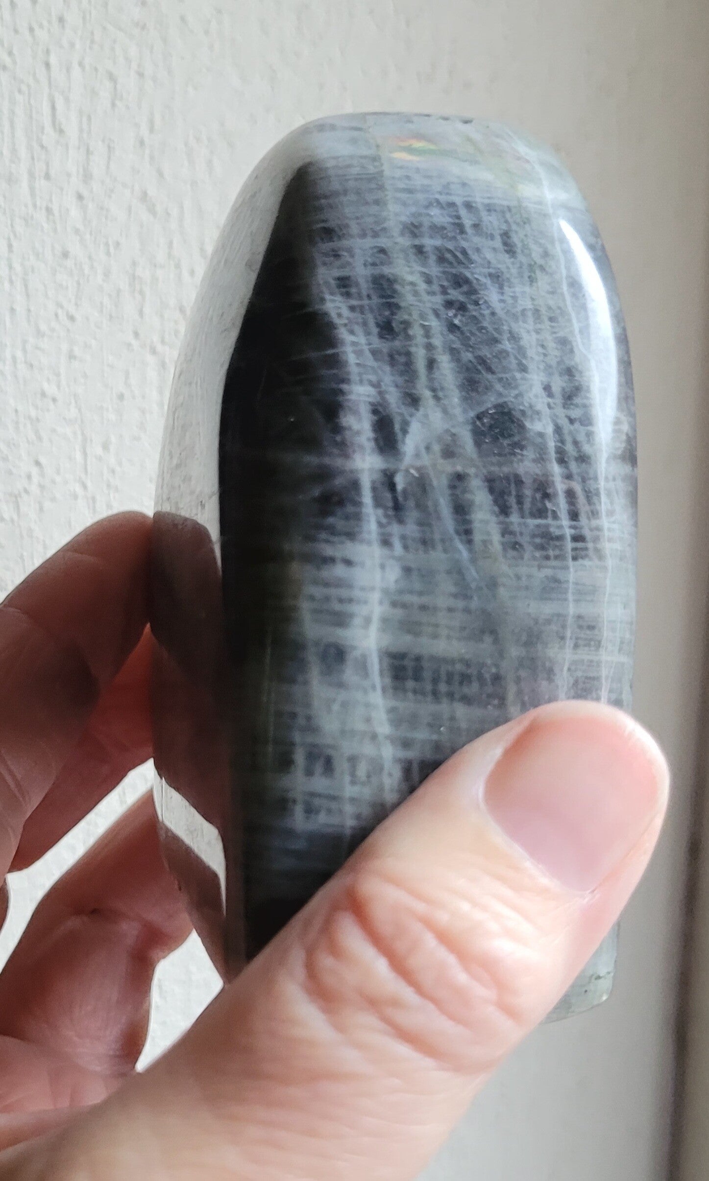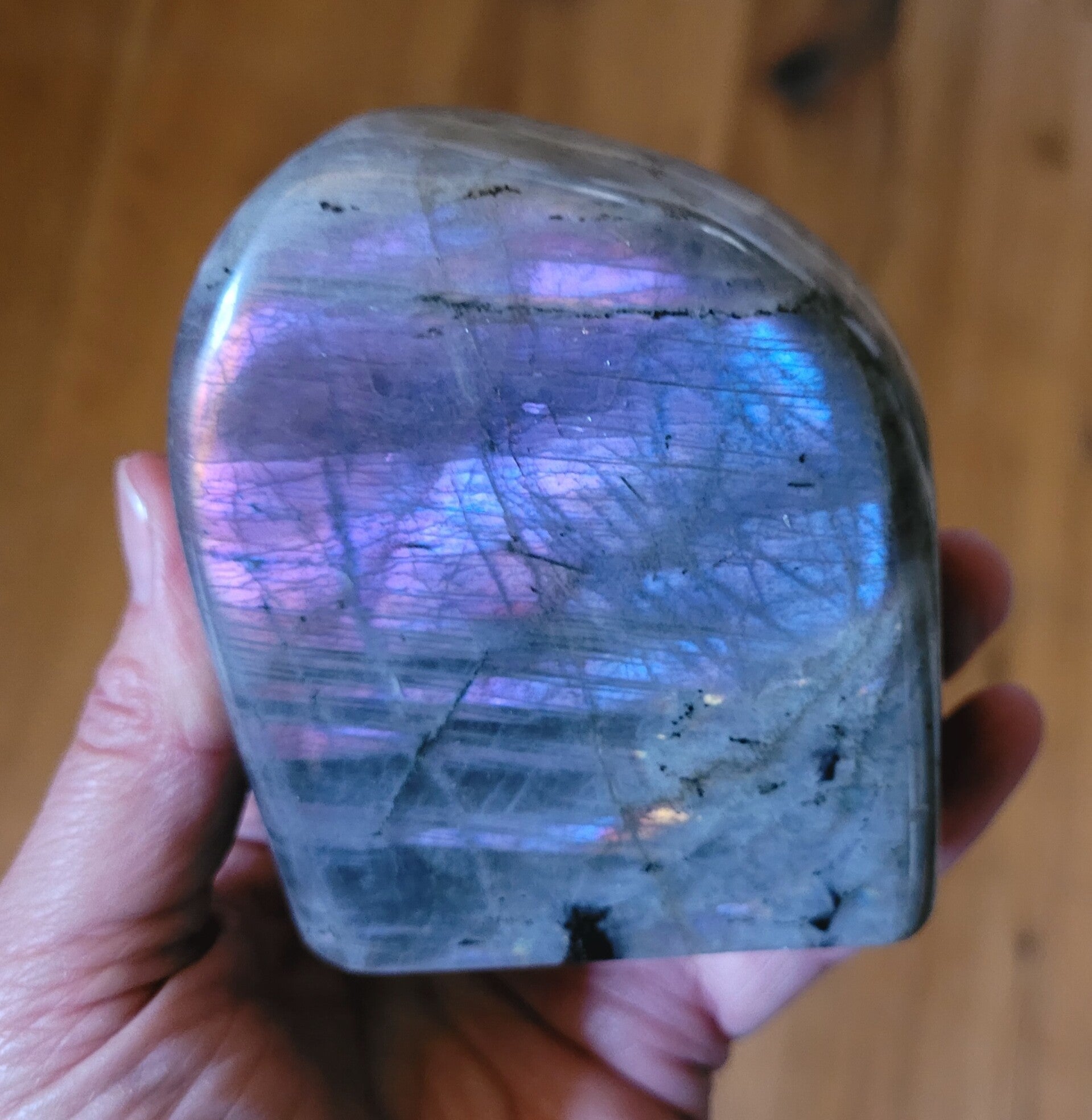 Sculptuur Paars, Roze Labradoriet uit Madagaskar. Ook wel mermaid Labradorite genoemd.