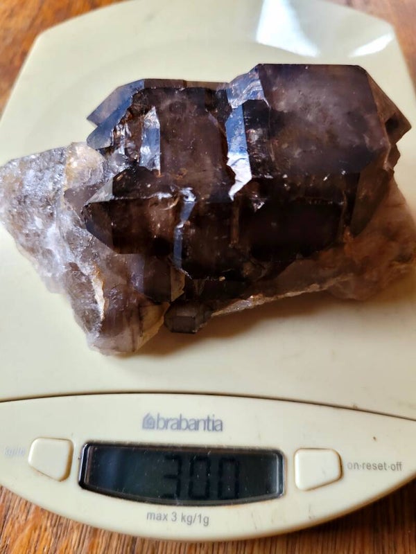 Brandberg elestial scepter doppelender Rauchquarz kristall auf roh quarz.