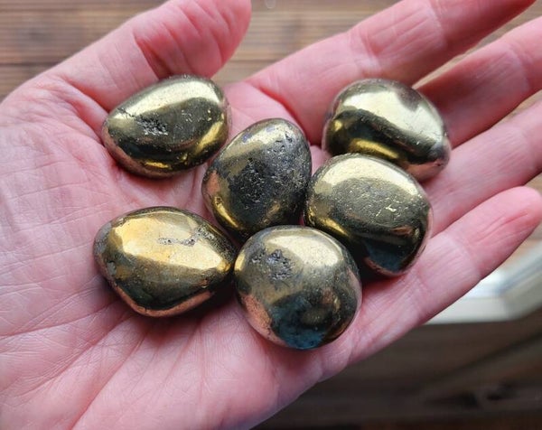 Mooie grote glanzende trommelsteen Chalcopyriet.