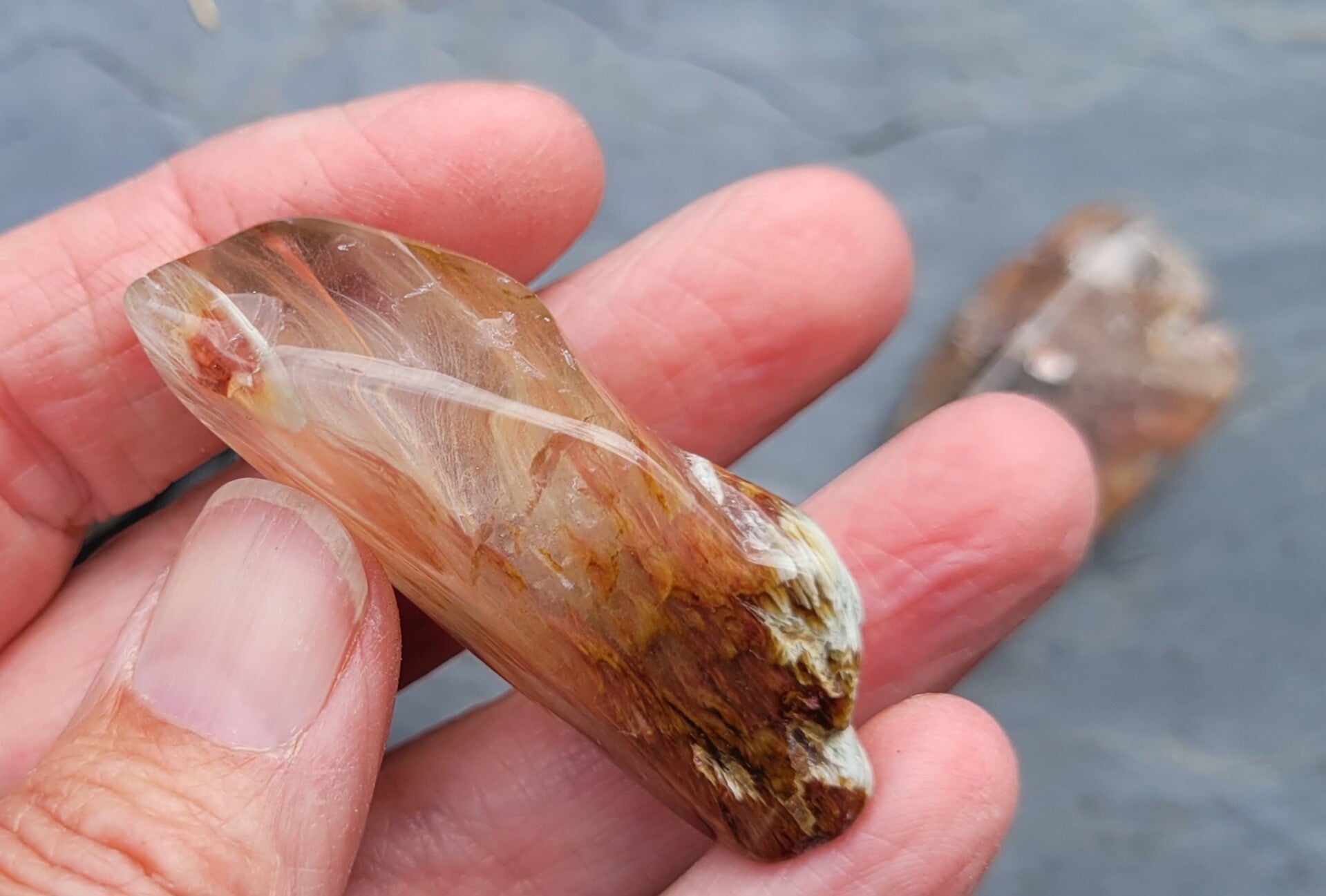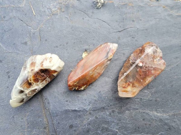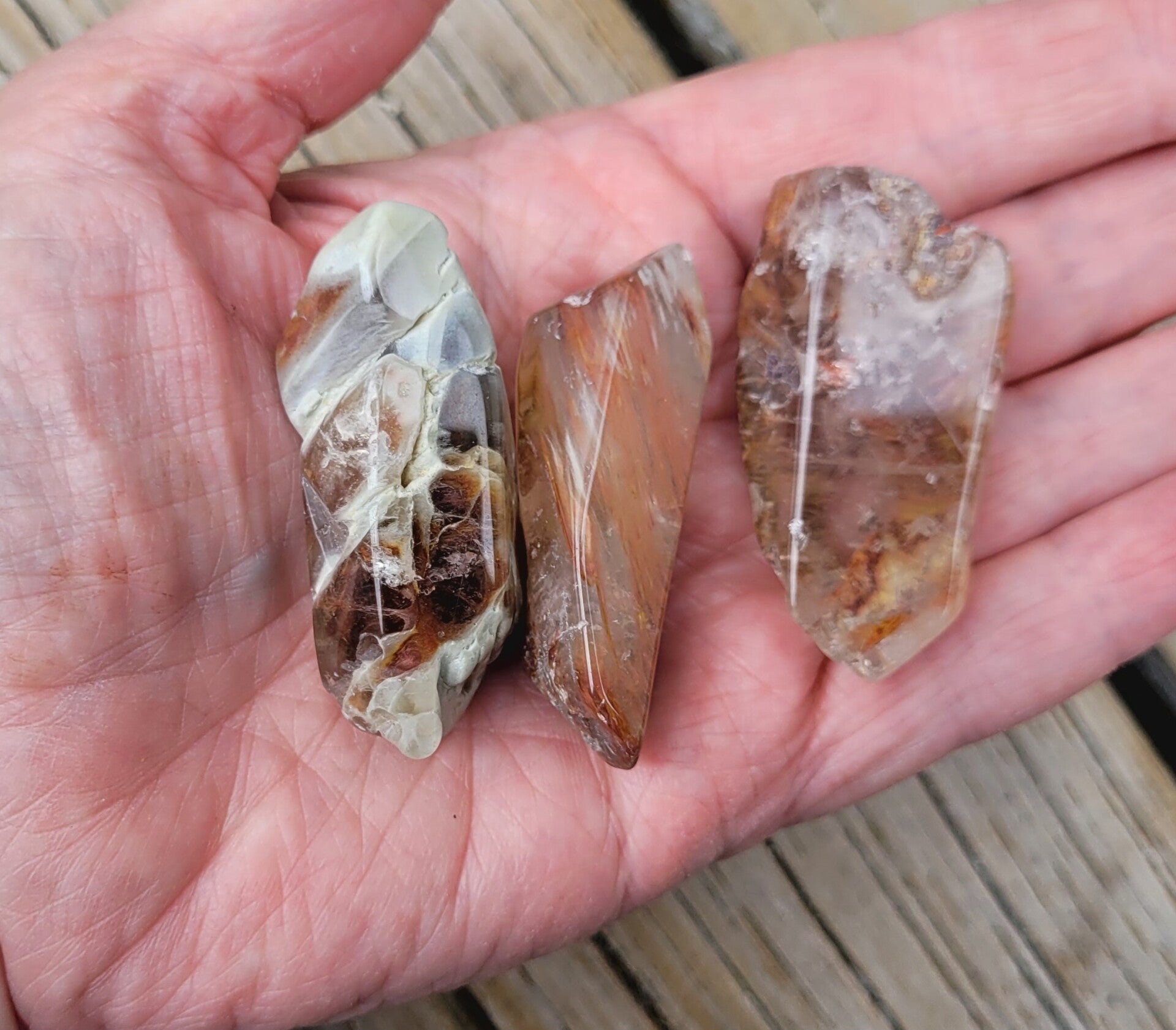 Tumbled crystals Amphibolequartz , desirite