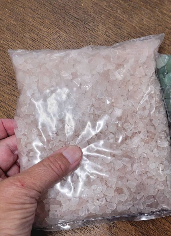 Kleine trommelsteentjes rozekwarts voor orgonite. Geslepen steentjes