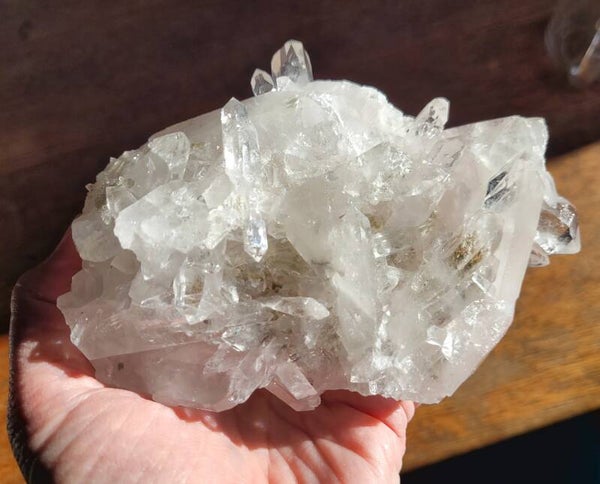 Bijzonder cluster Bergkristal uit Diamantina, Brazilie. Deels helder en aan beide kanten kristallen.