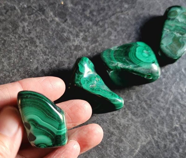 Malachiet gepolijst, 3 a 4 cm Malachit, Malachite Congo