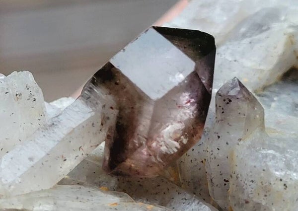 Cluster smokey Amethyst van Zimbabwe. Met scepterkristal.meestal Shangaankwarts of Siriuskwarts genoemd.
