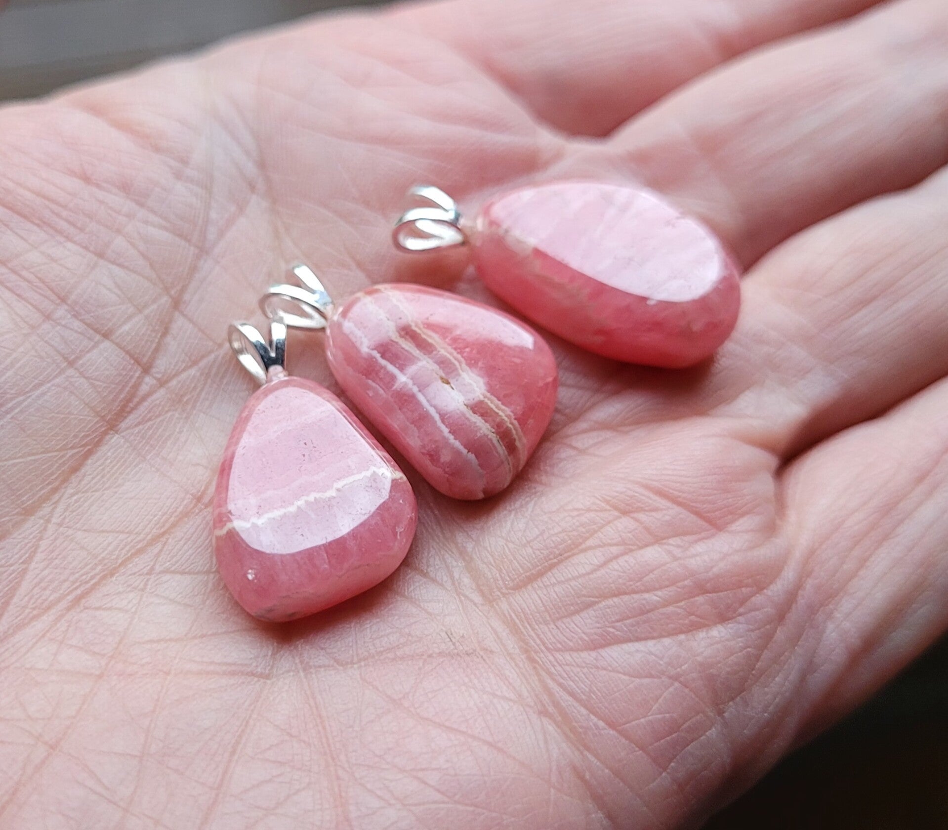 Small pendant Rhodochrosite in A1 quality. With silver bail.