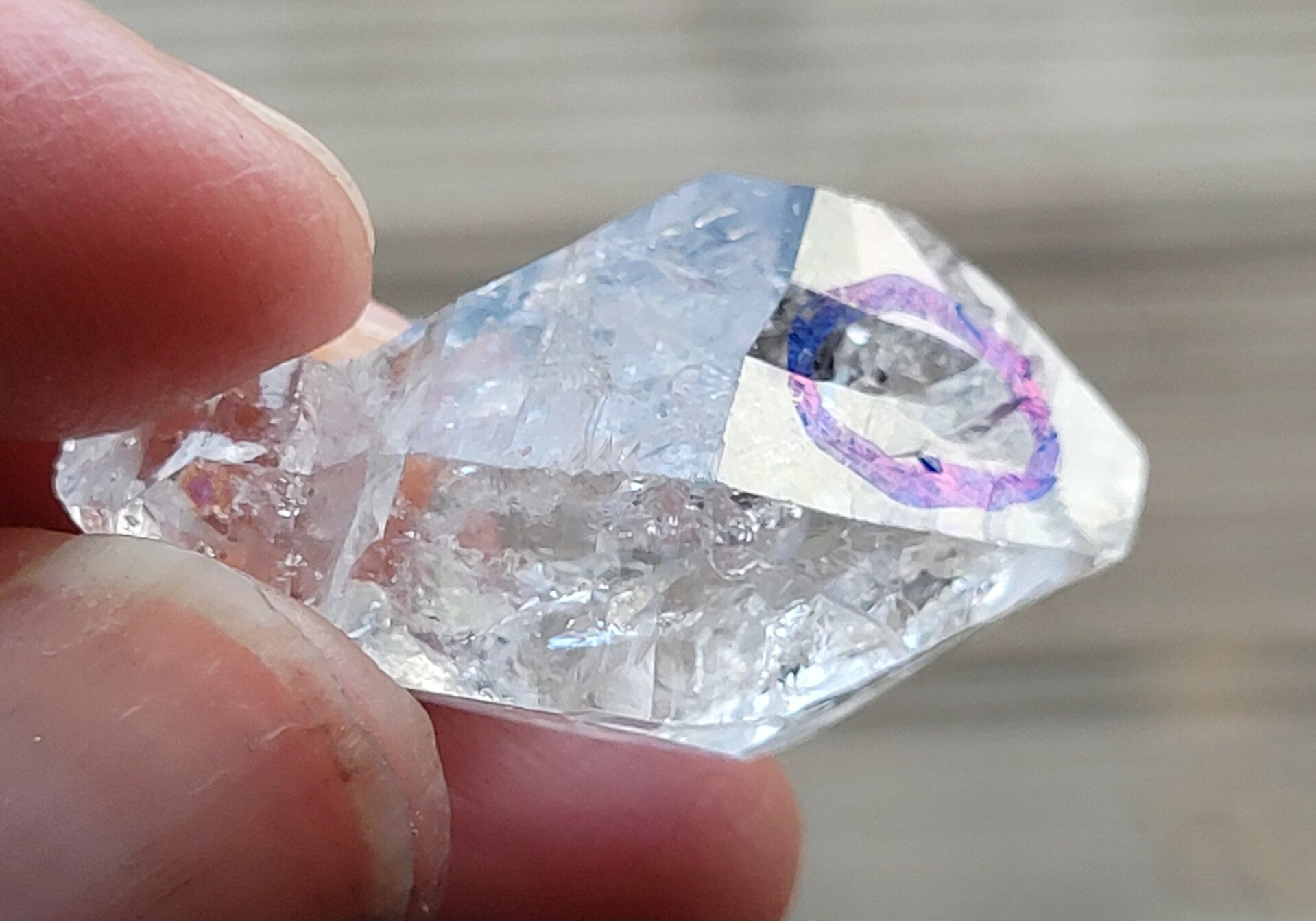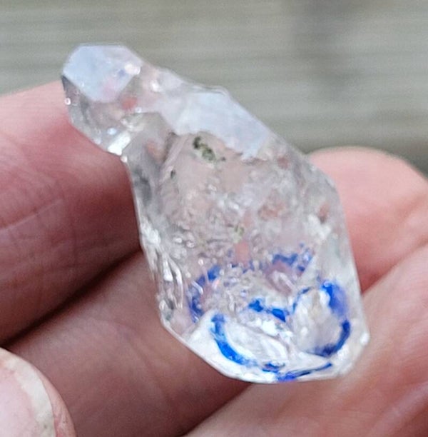 Mooie dubbeleinder Diamond Quartz met kleine Enhydro. Het blauwe is afwasbaar.
