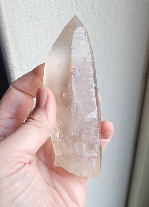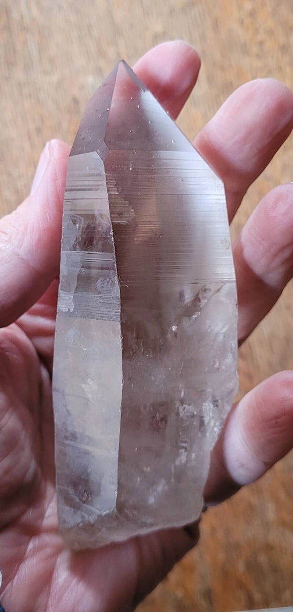 Very nice smokey Laserquartz quartzcrystal, sc Lemurian crystal, it has a lot of Lines/ Codes.