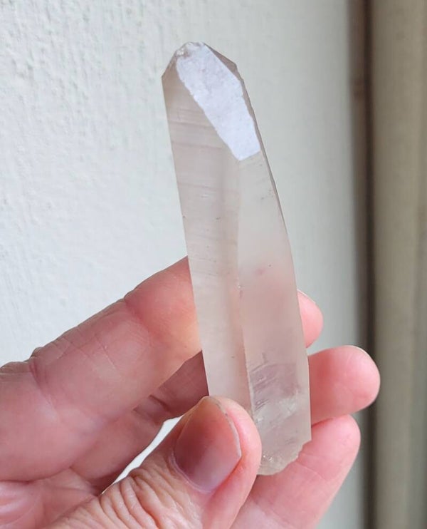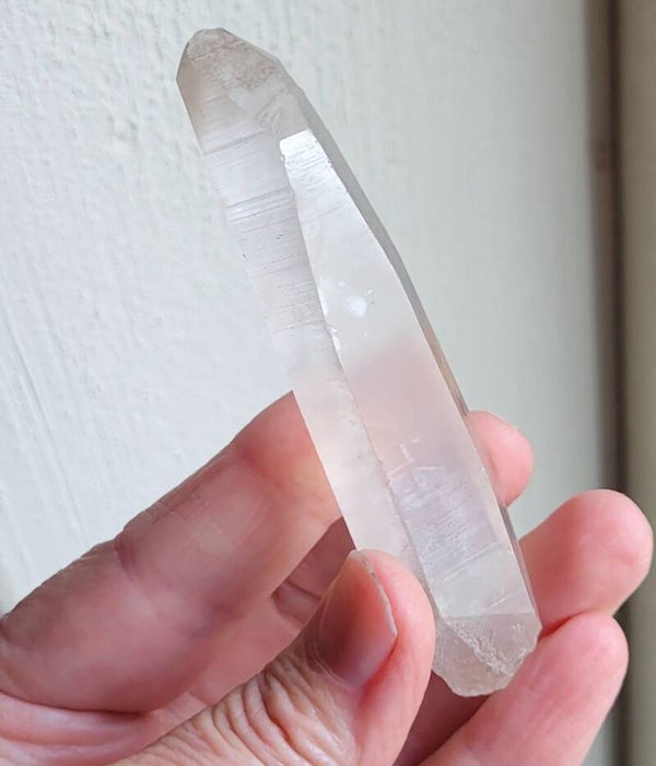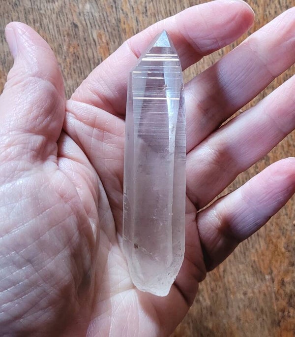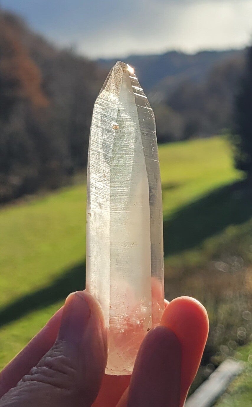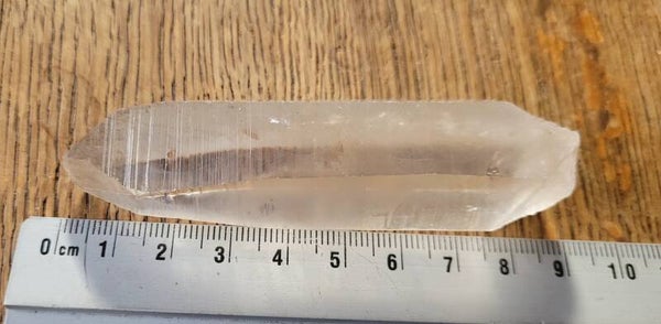Mooie Laserkwarts Rookkwartskristal , zg. Lemurisch kristal door alle 'coderingen' dwarsslijntjes.