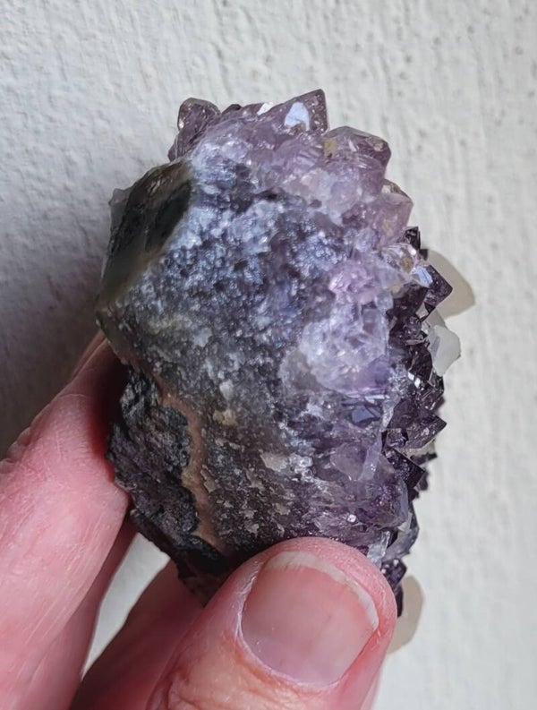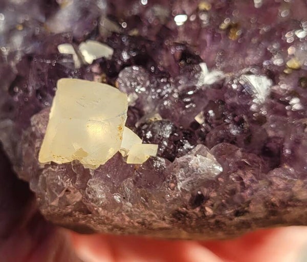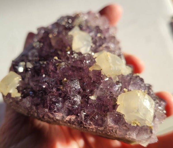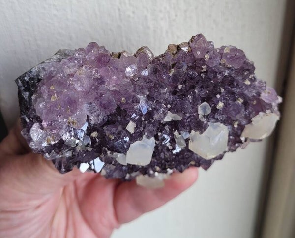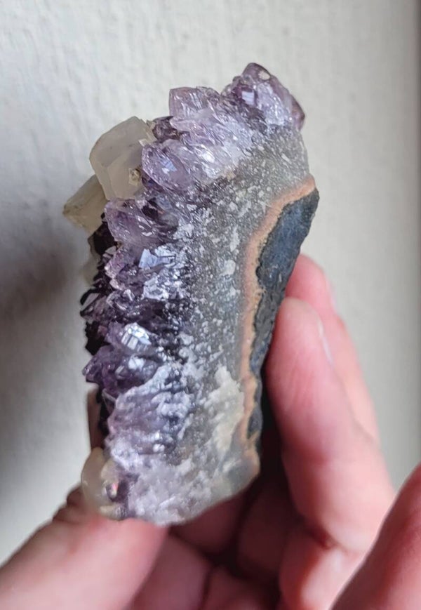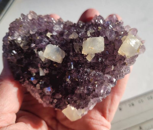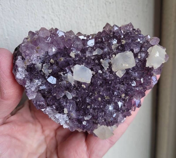 Ruwe Amethist uit Uruguay, toevallig een hartvorm met calciet blokjes.