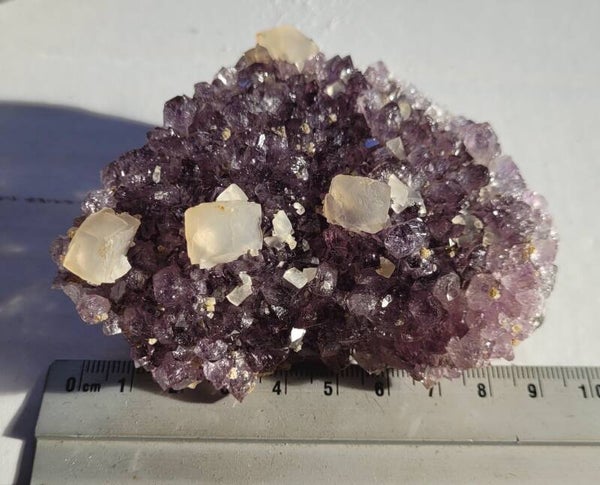 Rough Amethyst from Uruguay, heartshape with Calcite cubes.