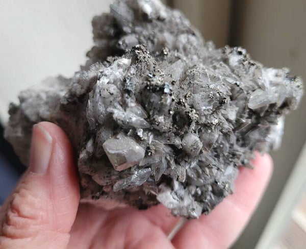 Special cluster dogtooth Calcite with Marcassite / Chalcopyrite. One side dark, one side light calcite
