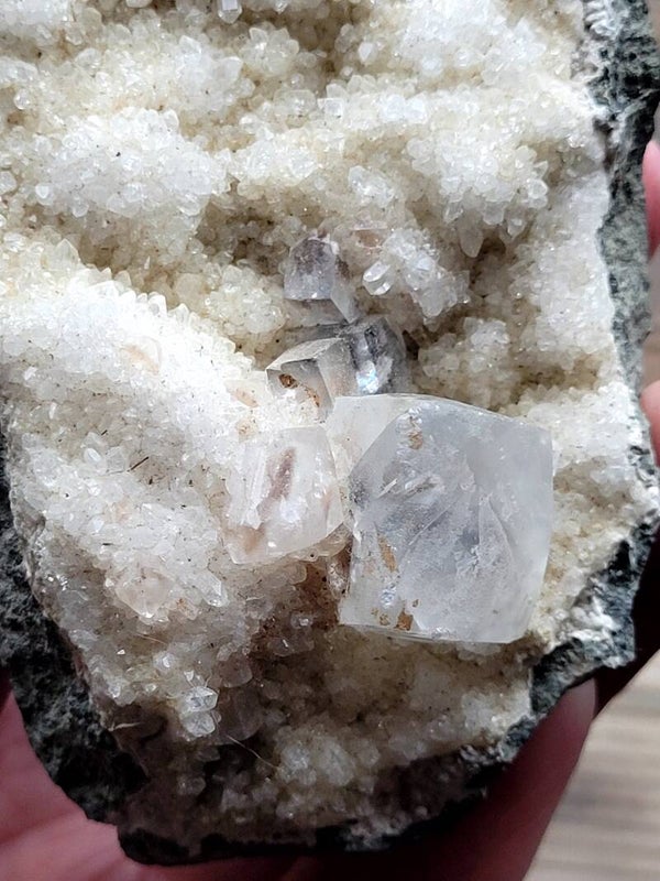 Apofyliet kubussen op fijne Heulandiet 151 gr. 8 cm Apophyllith Würfel auf feine heulandite , Apophyllite cubes on fine heulandite crystals