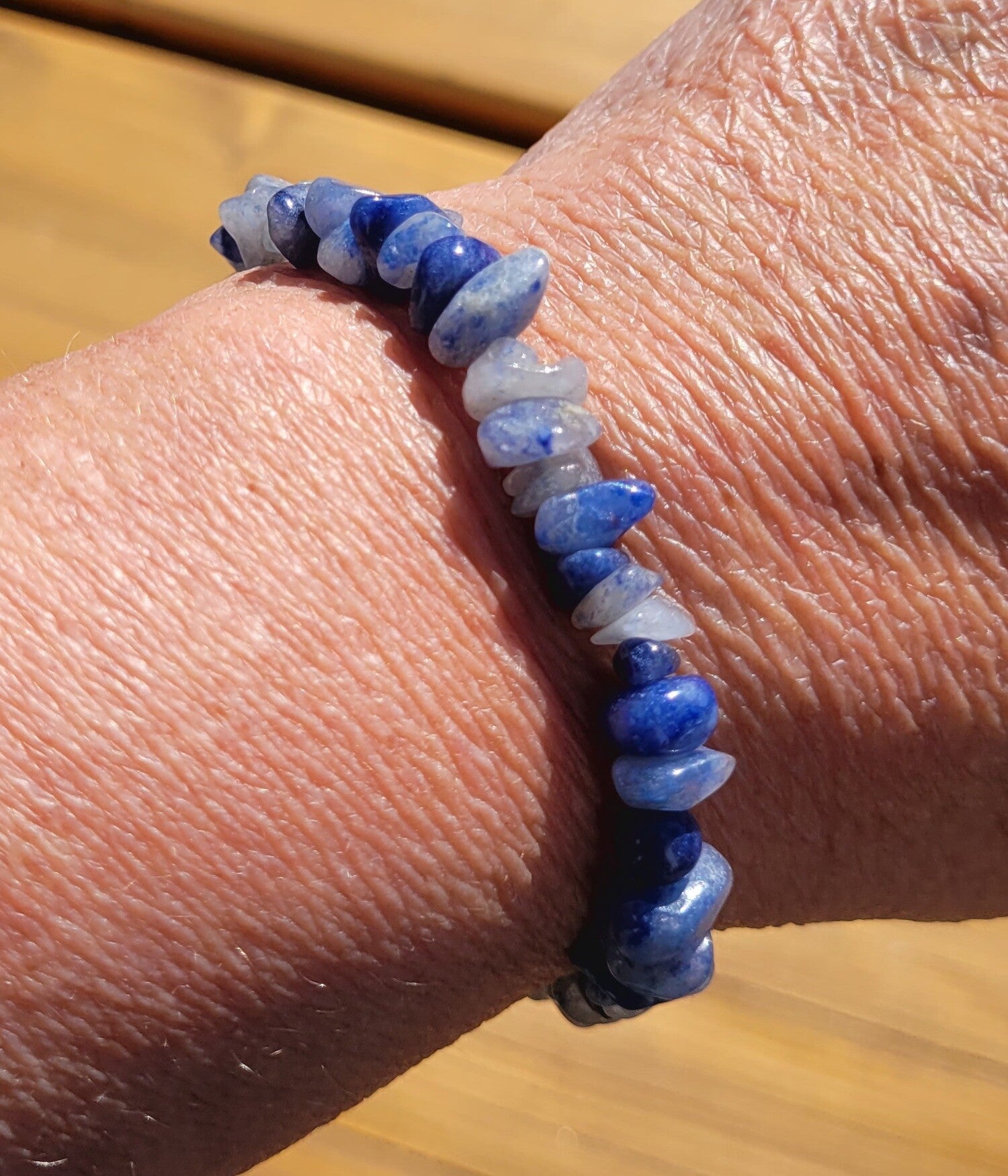 Blauwe kwarts Splitarmand, Blaue quarz splitterarmband, Bracelet Blue quartz