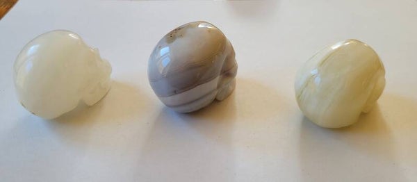 Kleine Schedel Skull Witte Jade Agaat en Calciet 5 cm