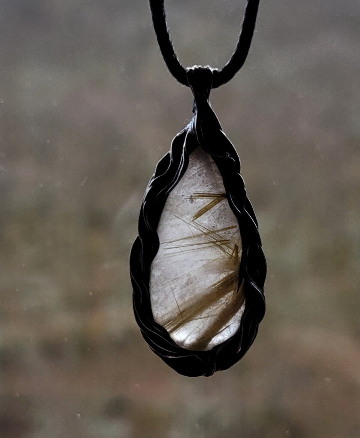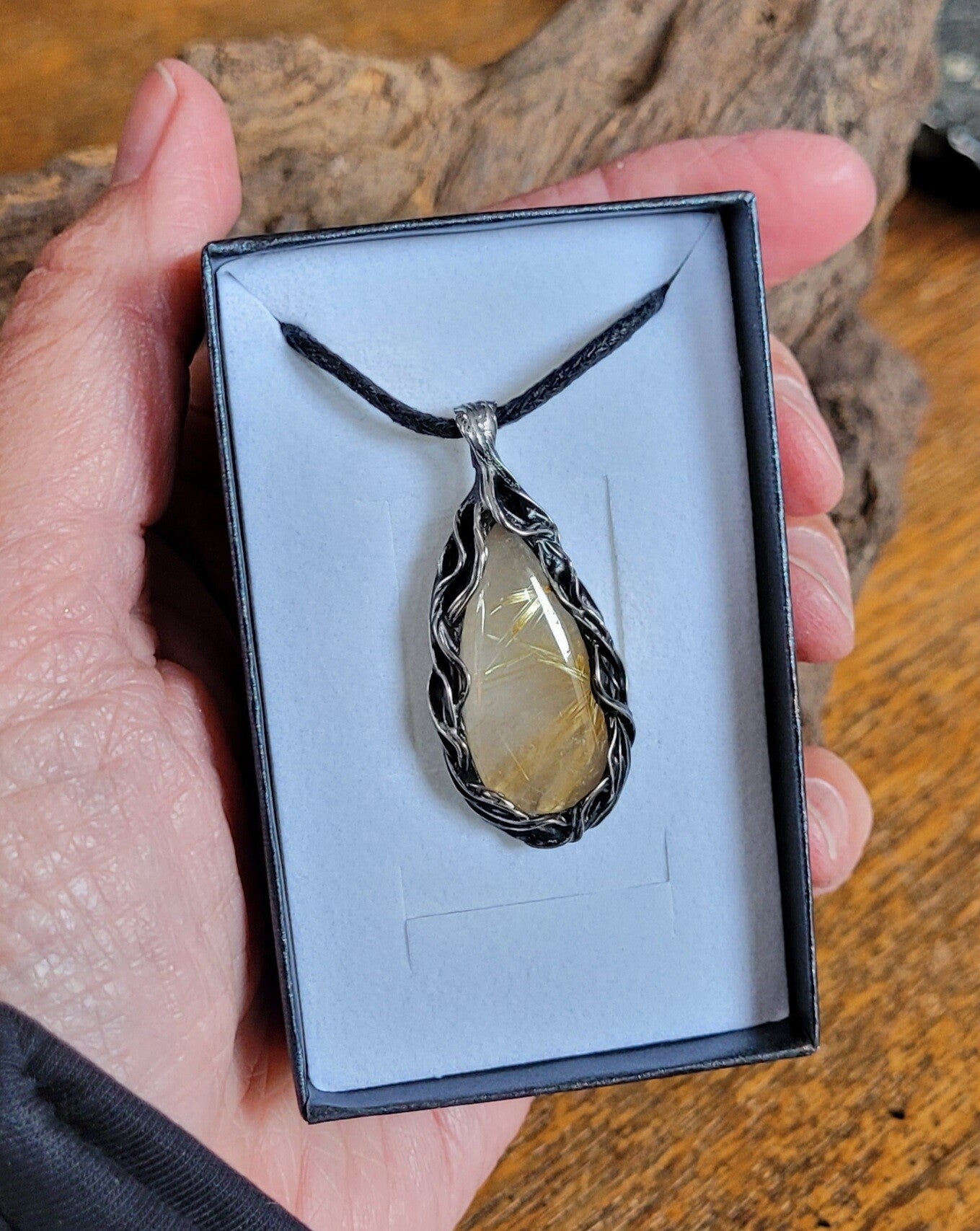 Anhänger handgemacht, Rutilquarz in Silber/Zinn. Unikat