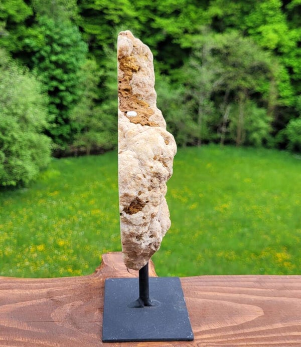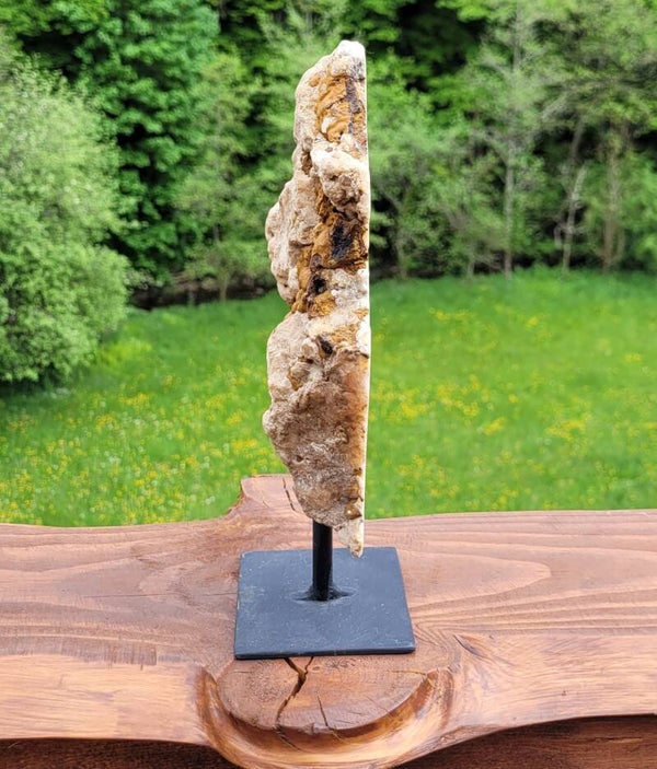 Mooie eenzijdig geslepen sculptuur Roze Amethist, Pink Amethyst op metaal standaard.