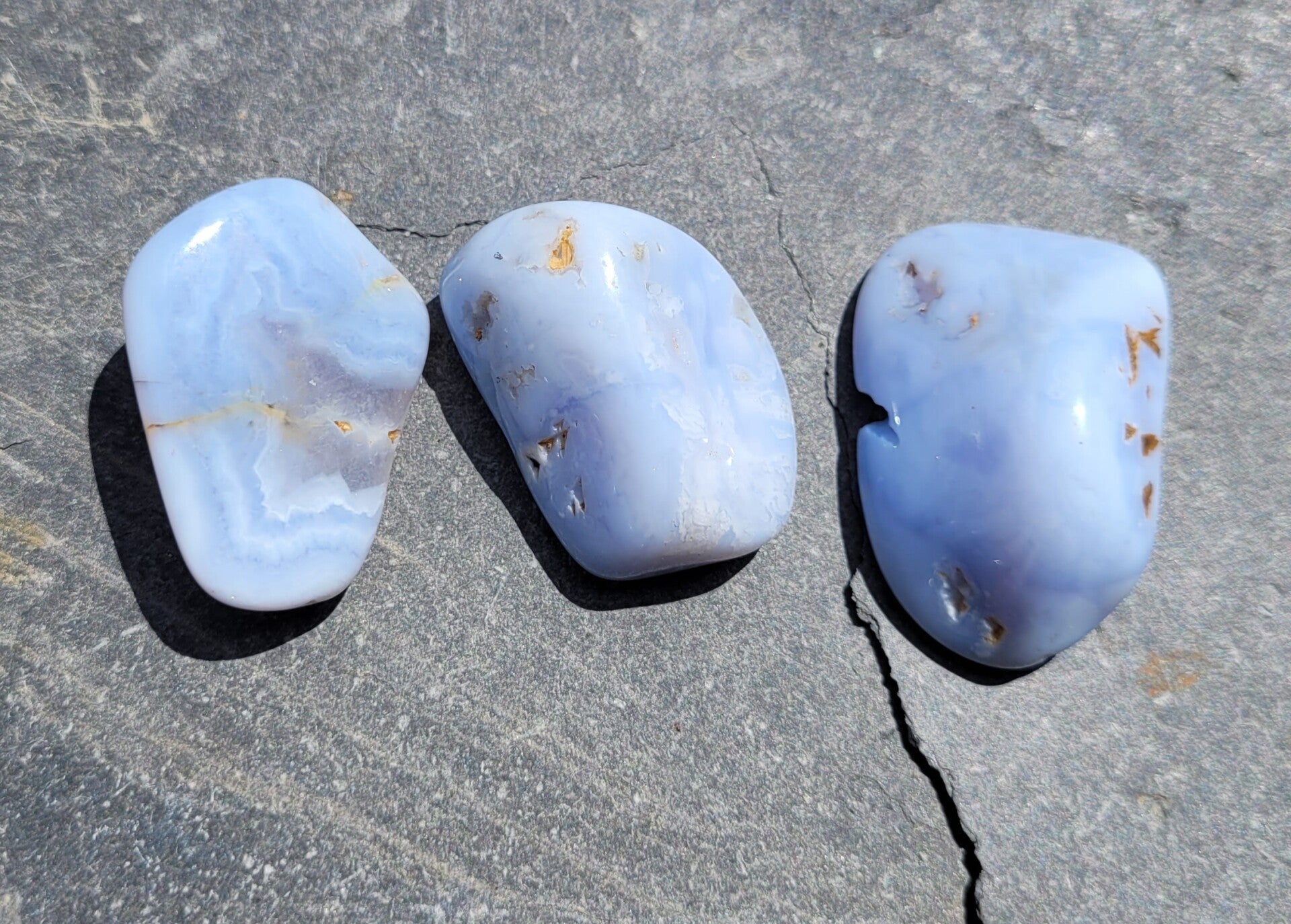 Trommelsteen Blauwe Chalcedoon 3 a 3,5 cm Blue Chalcedony