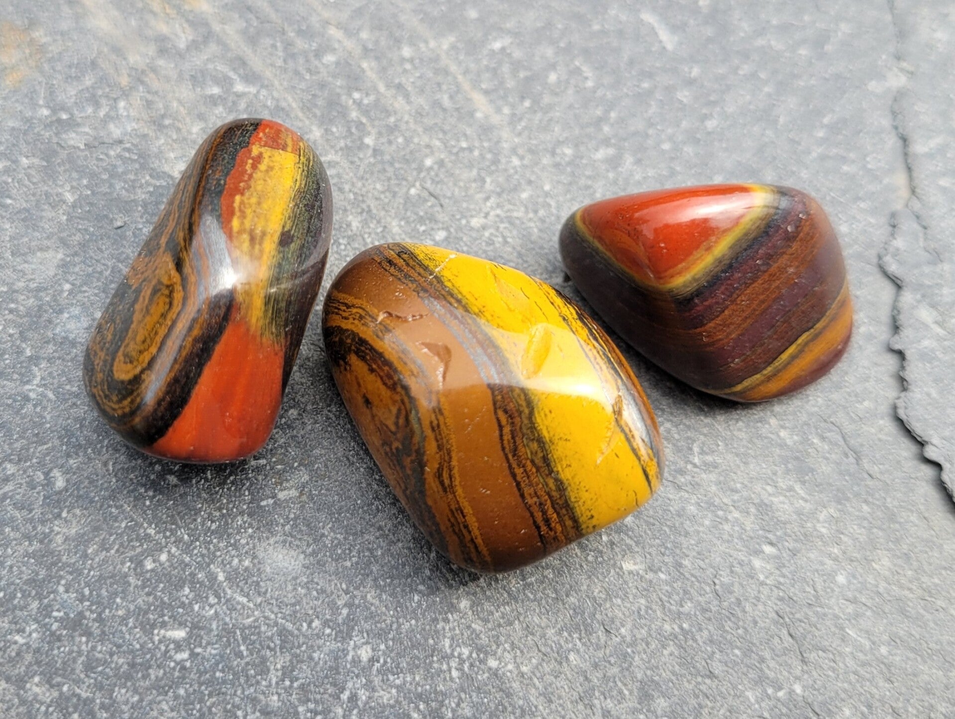Je krijgt 3 of 10 stuks van deze trommelstenen. Op verschillende kleur en grootte uitgezocht.