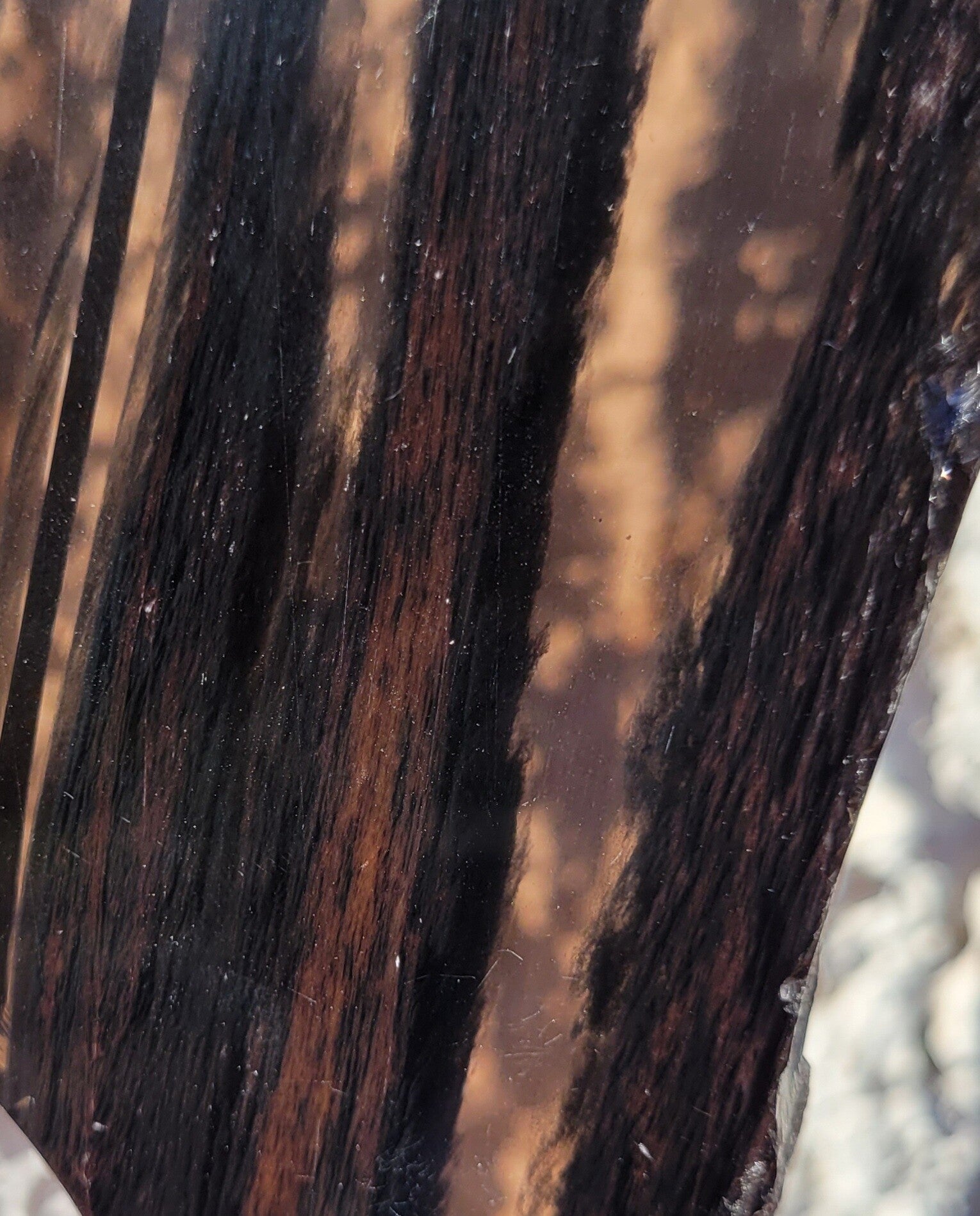Mooie geslepen plaat Lamel Obsidiaan met ruwe zijkanten.
