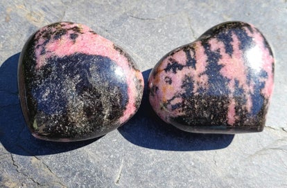 Prachtig dik hart Rhodoniet, kiezen, beide 7 cm